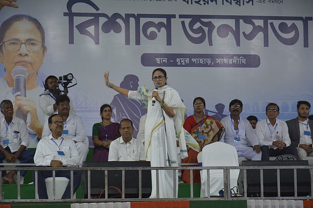 मुर्शिदाबाद : 'लॉ एंड ऑर्डर' हमारे हाथ में नहीं है। चुनाव आयोग ने अपने हाथों में ले लिया है। राज्य में राष्ट्रपति शासन चलाया जा रहा है। तृणमूल सुप्रीमो ममता बनर्जी ने यह कहते हुए गुरुवार को सागरदिघी के धूमर पहाड़ मैदान में सागरदिघी के प्रत्याशी बायरन विश्वास के समर्थन में आयोग पर जमकर निशाना साधा। वोटर लिस्ट से लोगों के नाम हटाने के मुद्दे का जिक्र करते हुए उन्होंने कहा, "मुर्शिदाबाद और मालदा जिलों से व्यापक संख्या में नाम हटाने की कोशिश हो रही है। इसके बाद लोगों को डिटेंशन कैंप भेज दिया जाएगा। मैं किसी को बाहर नहीं जाने दूंगी। किसी को डिटेंशन कैंप नहीं जाना पड़ेगा।" इसके बाद उन्होंने सभा में मौजूद आम लोगों को चेतावनी देते हुए कहा कि कानून अपने हाथ में ना लें नहीं तो जेल भेज दिये जाएंगे। पार्टी से निष्काषित और आम जनता उन्नयन पार्टी के चेयरमैन हुमायूं कबीर का नाम लिए बिना उन्होंने कहा कि कुछ गद्दार दिल्ली से पैसे लेकर चुनाव से पहले मंदिर-मस्जिद की पॉलिटिक्स कर रहे हैं। वे हैदराबाद से नेता लाए हैं। आप इस प्लान को नहीं समझ पा रहे हैं। आप पर हमला होगा। आपको गिरफ्तार किया जायेगा। उन्होंने आपके चुनाव अधिकार छीन लिए हैं, इस बार वे आपको वोट भी नहीं डालने देंगे। वे सभी को अरेस्ट करेंगे। चुनाव कैंसिल करने का प्लान है। वहीं कहा कि कांग्रेस उस प्लान में भाजपा के साथ है। उन्होंने भाजपा पर निशाना साधते हुए कहा कि सभी प्रोजेक्ट्स रोक दिए जाएंगे। भाजपा सब कुछ छीन लेगी। हिंदू-मुस्लिम जोट बनायें। मैं किसी भी सांप्रदायिक मुद्दे का सपोर्ट नहीं करती। हम सभी शांति से रहना चाहते हैं। इसके बाद उन्होंने कहा, "मुझसे सब कुछ छीना जा रहा है और राज्य में लॉ एंड ऑर्डर तोड़ा जा रहा है। वोटर लिस्ट से नाम हटने पर मुख्य सचिव कुछ कह नहीं पा रहे हैं। मैं आपलोगों के लिए लड़ रही हूं। आप भी अप्लाई कर सकते हैं। ट्रिब्यूनल फैसला करेगा।" वहीं ममता ने मालदा की घटना पर गुस्सा जताते हुए कहा कि आप लोगों के अलावा साथ मेरे साथ कोई नहीं है। उन्होंने सभी को भरोसा दिलाया, "मैं पूरी तरह तैयार हूं। मुझ पर भरोसा करें। भाजपा के हमले को रोकने के लिए तृणमूल को वोट दें।" इसके बाद उन्होंने सुती की उम्मीदवार इमानी विश्वास के समर्थन में एक पब्लिक मीटिंग की। इस मीटिंग से उन्होंने डेवलपमेंट रिपोर्ट पेश की और कहा, "मैंने यहां रिवर पोर्ट का प्लान लिया है। यहां नदी का कटाव रोकने के लिए मैंने 1000 करोड़ रुपया दिया है।"
