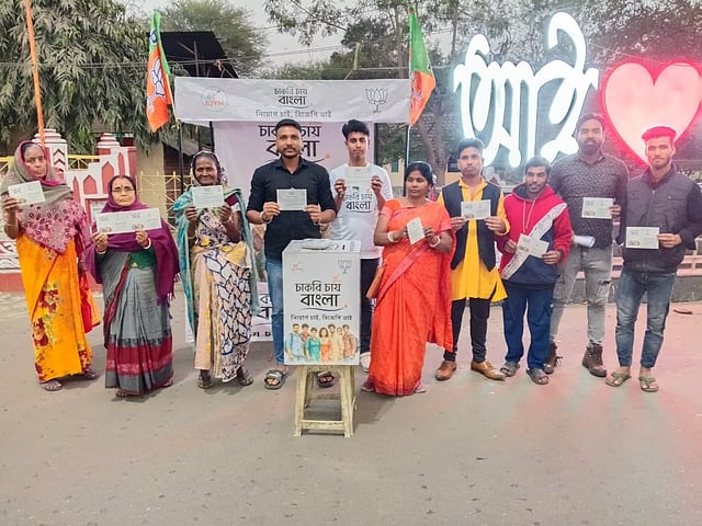 बर्नपुर : भारतीय जनता युवा मोर्चा ( बीजेवाइएम) के नमो युवा वॉरियर्स की तरफ से बर्नपुर बारी मैदान में नौकरी मांगे बांग्ला (चाकरी चाई बांग्ला) की मांग पर जनसंपर्क अभियान चलाया गया। मौके पर भारतीय जनता युवा मोर्चा के नमो युवा वॉरियर्स संयोजक गौरव बनर्जी ने कहा कि भाजपा युवा मोर्चा की ओर से नौकरी मांगे बांग्ला को लेकर जनसंपर्क अभियान चलाया गया। इससे पहले बस स्टैंड में युवाओं से नौकरी मांगे को लेकर पोस्ट कार्ड भरवाया गया और आज बारी मैदान में पोस्ट कार्ड भरवाया गया, जिसे नवान्न भेजा जायेगा तथा राज्य की मुख्यमंत्री से नौकरी की मांग की जायेगी। इस मौके पर सूरज हरी, सुमन देवी, सौरव रॉय, अमित कुमार, संजय वर्मा सहित काफी संख्या में नमो युवा वॉरियर्स मौजूद थे।
