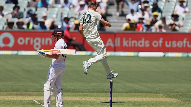 जेमी स्मिथ (22) जब 16 रन पर थे तब उन्होंने स्लिप में खड़े उस्मान ख्वाजा को कैच दे दिया। मैदानी अंपायरों ने कैच का मामला टीवी अंपायर को सौंप दिया, जिन्होंने फैसला सुनाया कि गेंद ग्लव्स या बल्ले से नहीं बल्कि हेलमेट से लगकर स्लिप में गई है। ऑस्ट्रेलिया के खिलाड़ी इस फैसले से हैरान थे। इसी बल्लेबाज के खिलाफ कमिंस की गेंद बल्ले के निचले हिस्से से लगकर विकेटकीपर कैरी के पास पहुंची तो अंपायर ने उसे आउट करार दिया। रीप्ले से स्पष्ट नहीं हो पा रहा था की गेंद बल्ले से लगी है या नहीं लेकिन इसके बावजूद टीवी अंपायर ने बल्लेबाज को आउट दिया। इंग्लैंड की टीम पांच टेस्ट मैच की सीरीज के पहले दो मैच हारने के कारण 0-2 से पीछे चल रही है। उसे अगर एशेज जीतने की अपनी उम्मीदों को बरकरार रखना है तो इस मैच में हर हाल में जीत दर्ज करनी होगी।