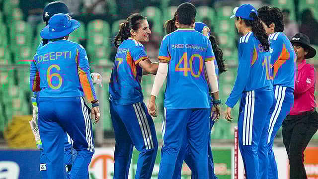 सीरीज में बने रहने की कोशिश में श्रीलंका की हसिनी परेरा (25) ने टीम को तेज शुरुआत दिलाई और रेणुका के पहले ओवर में दो चौके लगाकर 12 रन बटोरे। परेरा ने संयम से खेलते हुए विकेटकीपर के ऊपर से स्कूप शॉट खेलकर अपना चौथा चौका भी लगाया। कप्तान चामरी अटापट्टू (03) स्ट्राइक रोटेट करने में जूझती रहीं। लेकिन भारत ने जल्द ही वापसी की। दीप्ति ने अहम सफलता दिलाई जब अटापट्टू आगे बढ़कर खेलने की कोशिश में गेंद पर बल्ले का किनारा छुआकर भारतीय कप्तान हरमनप्रीत कौर को कैच दे बैठीं। इसके बाद रेणुका ने अपने दूसरे स्पेल में छठे ओवर में दोहरा झटका दिया।