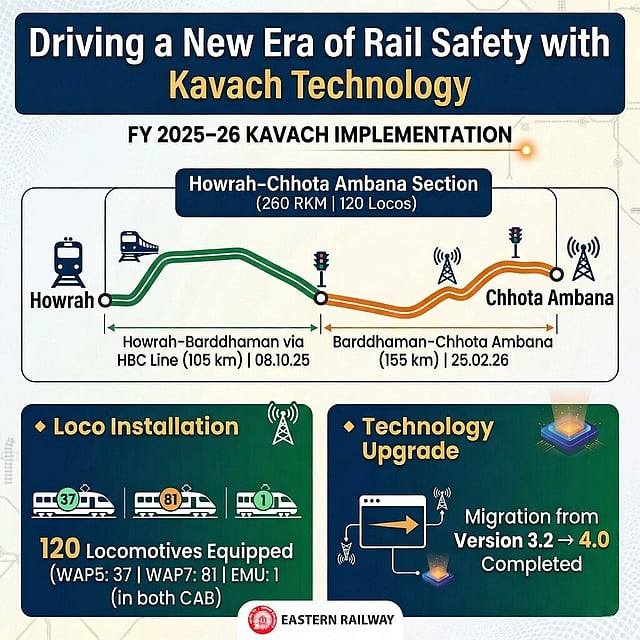 कोलकाता : पूर्व रेलवे के जीएम मिलिंद देऊस्कर के दूरदर्शी नेतृत्व में यात्री सुरक्षा के क्षेत्र में एक बड़ी उपलब्धि हासिल की गई है। अत्याधुनिक कवच 4.0 प्रणाली अब बर्द्धमान मार्ग के माध्यम से हावड़ा से छोटा अंबाना तक 260 किमी के खंड पर पूरी तरह से चालू हो चुकी है। ‘कवच’, जिसका अर्थ है "ढाल", एक डिजिटल संरक्षक या इलेक्ट्रॉनिक मस्तिष्क की तरह है जो आपकी यात्रा के हर सेकंड ट्रेन पर नजर रखता है। यह स्वदेशी भारतीय तकनीक इस तरह डिजाइन की गई है कि मानवीय त्रुटि कभी भी किसी दुर्घटना का कारण न बने, जिससे हर यात्री को उच्च तकनीकी सुरक्षा मिल सके। इस मार्ग पर यात्रा करने वाले यात्रियों के लिए कवच एक निरंतर सुरक्षा कवच की तरह काम करता है और ट्रेन की हर गतिविधि पर निगरानी रखता है। यदि ट्रेन तेज गति से चल रही हो या चालक अनजाने में किसी सिग्नल को पार कर जाए, तो यह प्रणाली स्वतः नियंत्रण संभाल लेती है और चालक के हस्तक्षेप के बिना ही ब्रेक लगा देती है। यह विशेष रूप से गंभीर दुर्घटनाओं जैसे आमने-सामने या पीछे से टक्कर को रोकने के लिए विकसित की गई है। इसके अलावा, भारी बारिश या घने कोहरे के दौरान, जब दृश्यता कम होती है, यह प्रणाली इंजन के भीतर ही चालक को वास्तविक समय में सिग्नल की जानकारी प्रदान करती है। यह बाहरी सुरक्षा का भी ध्यान रखती है, जैसे लेवल क्रॉसिंग के पास पहुंचने पर स्वतः ट्रेन की सीटी बजाना और आपात स्थिति में आसपास की सभी ट्रेनों को सचेत करने के लिए एसओएस बटन की सुविधा। यह 260 किमी का खंड व्यस्त हावड़ा-नई दिल्ली मार्ग का एक महत्वपूर्ण हिस्सा है, और 120 इंजनों में इस प्रणाली की स्थापना के साथ, पूर्व रेलवे यह सुनिश्चित कर रही है कि आपकी यात्रा न केवल अधिक सुरक्षित हो बल्कि अधिक सुगम भी हो। गति सीमा की निरंतर निगरानी के कारण ट्रेनें संतुलित और सुरक्षित गति बनाए रखती हैं, जिससे मैनुअल नियंत्रण के कारण होने वाले झटकों में कमी आती है। यह उपलब्धि एक नए युग की शुरुआत का प्रतीक है, जहां ‘मेक इन इंडिया’ तकनीक लाखों लोगों की सुरक्षा सुनिश्चित कर रही है और आपकी यात्रा को अंतरराष्ट्रीय सुरक्षा मानकों के अनुरूप बना रही है। इस महत्वपूर्ण उपलब्धि पर प्रतिक्रिया देते हुए, पूर्व रेलवे के मुख्य जनसंपर्क अधिकारी शिबराम माझि ने कहा कि यात्रियों की सुरक्षा हर पहल का केंद्र है। उन्होंने जोर दिया कि कवच 4.0 के लागू होने के साथ, पूर्व रेलवे ट्रैकों पर विश्वस्तरीय सुरक्षा सुनिश्चित कर रही है और ‘शून्य टक्कर’ के लक्ष्य की दिशा में अग्रसर है। यह एक मौन नायक की तरह पर्दे के पीछे लगातार काम करता है ताकि यात्री अपने परिवार के साथ निश्चिंत होकर आरामदायक और सुरक्षित यात्रा का आनंद ले सकें।
