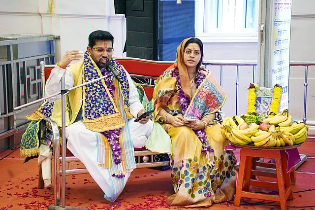 कोलकाता : भागवताचार्य श्री अनुराग कृष्ण शास्त्री कन्हैयाजी धर्मपत्नी विनीता शास्त्री के साथ श्री श्याम मन्दिर आलमबाजार में गत दिनों पधारें। इसके पहले अनुरागजी के श्रीचरण मंदिर के प्राण-प्रतिष्ठा समारोह में पड़े थे। मंदिर प्रबंध न्यासी श्री गोविन्द मुरारी अग्रवाल एवं ट्रस्टी श्री सुनील खेतान ने उनका भव्य स्वागत किया। अनुरागजी ने अपने सारगर्भित प्रवचन में बाबा श्याम की महिमा का व्याख्यान किया। बाबा श्याम के विषय में सारगर्भित व्याख्यान से उपस्थित भक्तगण मोहित हो गये। इससे पूर्व मंदिर के ट्रस्टी सुनील खेतान ने पुष्प माला एवं दुपट्टा पहनाकर उनका अभिनन्दन किया। विनीता का सम्मान आरती अग्रवाल ने किया। इस शुअवसर पर मंदिर के सदस्यों में सुरेश अग्रवाल, पप्पू चौधरी, सरजु साव, मनोज सिंह, सुरेन्द्र शर्मा, आरती अग्रवाल, बबीता शर्मा, बालमुकुन्द अग्रवाल, मनोहर केजरीवाल, विकाश भावसिंहका, प्रवीण केजरीवाल आदि सक्रिय थे।