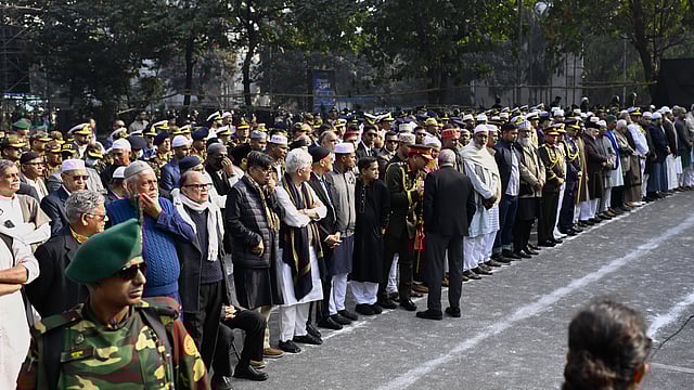 अंतरिम सरकार के प्रमुख सलाहकार प्रोफेसर मोहम्मद यूनुस, प्रधान न्यायाधीश जुबैर रहमान चौधरी और खालिदा जिया के बेटे एवं बीएनपी के कार्यवाहक अध्यक्ष तारिक रहमान विदेशी गणमान्य व्यक्तियों, अंतरिम सरकार के सलाहकारों, विभिन्न राजनीतिक दलों के नेताओं और वरिष्ठ सरकारी एवं सैन्य अधिकारियों के साथ जनाजे की नमाज में शामिल हुए। जिया के बड़े बेटे रहमान ने नमाज से पहले वहां मौजूद लोगों से कहा, ‘‘कृपया अल्लाह से दुआ करें कि उन्हें जन्नत में जगह मिले।’’