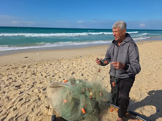 गाजा के खान यूनिस बंदरगाह के पास नीले, लहराते समुद्र की सतह पर दो फ़िलिस्तीनी मछुआरे अपनी छोटी और जर्जर नाव को करीब 200 मीटर तक पानी में ले गए। किनारे पर 72 वर्षीय फ़िलिस्तीनी मछुआरे दाऊद सेहवाइल फटे हुए जाल की जांच करते हुए लहरों को ध्यान से देख रहे थे, जैसे वह समुद्र की कोई ऐसी भाषा पढ़ रहे हों जिसे सिर्फ वही समझते हैं।