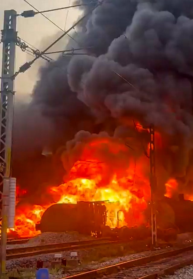 चेन्नई : तमिलनाडु में तिरुवल्लूर के निकट डीजल ले जा रही एक मालगाड़ी में रविवार सुबह आग लग गयी। रेलवे के एक अधिकारी ने बताया कि आग पहले मालगाड़ी के एक डिब्बे में लगी और फिर तेजी से दूसरे डिब्बों में फैल गयी। उन्होंने बताया कि इस हादसे में किसी के हताहत होने की सूचना नहीं है।
