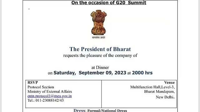 जी-20 डिनर के निमंत्रण में राष्ट्रपति को 'प्रेसिडेंट ऑफ इंडिया' की जगह 'प्रेसिडेंट ऑफ भारत' लिखने को लेकर बहस तेज है। इस बार भारत जी-20 शिखर सम्मेलन का आयोजन कर रहा है। नौ से 10 सितंबर तक राष्ट्रीय राजधानी दिल्ली में यह सम्मेलन होगा। इसमें दुनिया के कई देशों के राष्ट्राध्यक्ष और अमेरिकी राष्ट्रपति जो बाइडन भी शामिल होंगे।