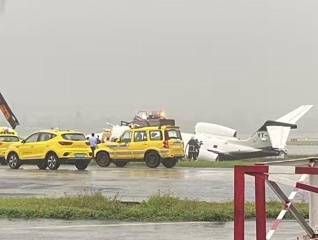 मुंबई : मुंबई एयरपोर्ट पर गुरुवार (14 सितंबर) को लैंडिंग करते वक्त एक प्राइवेट चार्टर्ड विमान रनवे से फिसल गया। विमान में 6 यात्री और दो क्रू मेंबर सवार थे। डीजीसीए ने कहा है कि अभी तक किसी के हताहत होने की सूचना नहीं है। डीजीसीए ने बताया कि विशाखापत्तनम से मुंबई के लिए उड़ान भरने वाला वीएसआर वेंचर्स लियरजेट 45 विमान वीटी-डीबीएल मुंबई हवाई अड्डे पर रनवे-27 पर उतरते समय फिसल गया। विमान में 6 यात्री और 2 क्रू सदस्य सवार थे। भारी बारिश के कारण दृश्यता 700 मीटर ही थी।