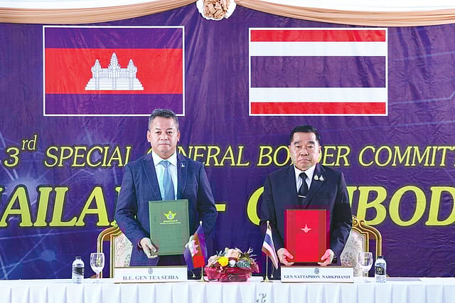 बैंकॉक : थाईलैंड और कंबोडिया ने शनिवार को घोषणा की कि उन्होंने सीमा पर जारी झड़पों को समाप्त करने के लिए संघर्षविराम को लागू करने के नए समझौते पर हस्ताक्षर किए जो स्थानीय समयानुसार दोपहर 12 बजे से प्रभावी हो गया। संघर्षविराम समझौते में झड़प समाप्त करने के अलावा यह भी कहा गया है कि दोनों पक्ष भविष्य में कोई सैन्य गतिविधि नहीं करेंगे और किसी भी पक्ष की हवाई सीमा का सैन्य उद्देश्य के लिए उल्लंघन नहीं करेंगे। 20 दिनों के संघर्ष को समाप्त कर दिया। इस युद्ध में अब तक 101 लोग मारे गए और दोनों पक्षों के पांच लाख से अधिक लोग विस्थापित हुए हैं।