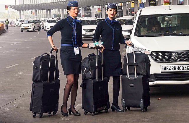 कोलकाता एयरपोर्ट पर इंडिगो एयर होस्टेस उड़ान के लिए तैयार