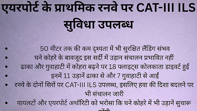 एक यात्री ने X पर लिखा, “धन्यवाद @AAI_Official, जब ढाका में कोहरे के कारण विमान नहीं उतर पा रहे थे, तब कोलकाता एयरपोर्ट ने मदद की।” ढाका से डाइवर्ट होकर आए एक बांग्लादेशी यात्री मोहम्मद तरीकुल इस्लाम ने कहा, “घने कोहरे के कारण आठ में से चार उड़ानें फिर से कोलकाता उतरी हैं। लगता है अब सभी दिल्ली की ओर जा रहे हैं।” पायलटों का कहना है कि रन वे के दोनों सिरों पर CAT-III ILS उपलब्ध होने से संचालन की विश्वसनीयता और दक्षता दोनों बढ़ेगी। बदलती हवा की दिशा के बीच भी उड़ानें सुरक्षित रूप से चलाई जा सकेंगी, क्योंकि विमान हमेशा हवा के विपरीत दिशा में उतरते हैं।