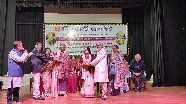 कोलकाता : विश्वकवि रवींद्रनाथ ठाकुर के विचार, आदर्श और दर्शन को आधार बनाकर जोड़ासांको ठाकुरबाड़ी परिसर में स्थापित रवींद्रभारती सोसाइटी ने अपने गौरवशाली सफर के 80 वर्ष पूरे कर लिए। 15 जनवरी 1947 को स्थापित इस प्रतिष्ठित सांस्कृतिक संस्था का 80वाँ स्थापना दिवस इस वर्ष रथीन्द्र मंच पर अत्यंत गरिमामय और भव्य रूप से मनाया गया।
