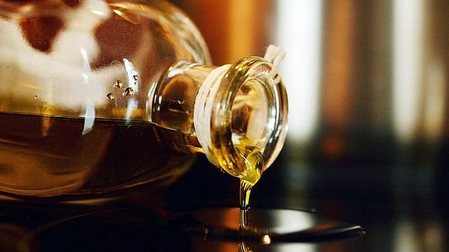हाथ से सरसों तेल का गिरना
