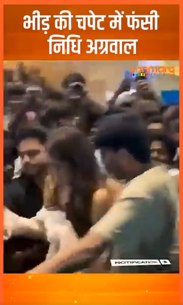 भीड़ की चपेट में फंसी निधि अग्रवाल