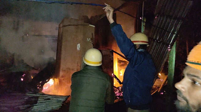 आग को काबू में करते दमकल कर्मी