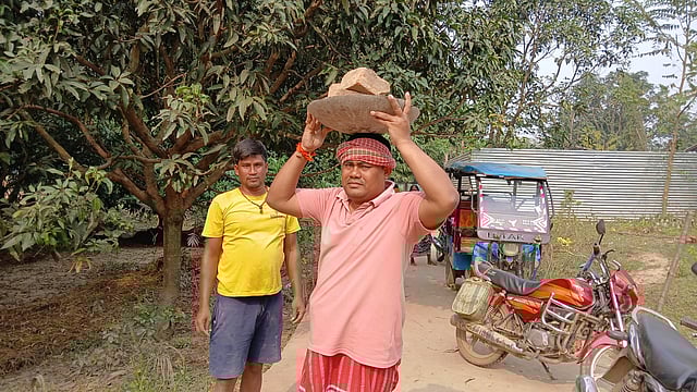 BJP MLA चिन्मय देव बर्मन सिर पर ईंटें लादे