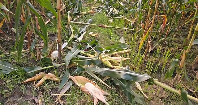 हाथियों के हमले के बाद नष्ट फसलें