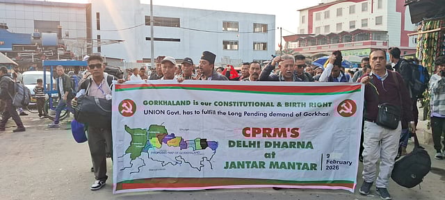 सिलीगुड़ी: दिल्ली में जंतर मंतर में धरना प्रदर्शन देकर सिलीगुड़ी लौटे सीपीआरएम प्रदर्शनकारियों ने गोरखालैंड को अपना हक बताते हुए सिलीगुड़ी जंक्शन में नारेबाजी की | बता दे कि, पहाड़ की पुरानी समस्याओं और गोरखालैंड की मांग से जुड़े मुद्दे पर केंद्र सरकार का ध्यान खींचने के लिए दिल्ली में धरना प्रदर्शन रखा गया है। इस कार्यक्रम में हिस्सा लेकर लौटे प्रतिनिधियों ने कई प्रकार की जानकारियां दी और बताया ‎गोरखालैंड के संवैधानिक अधिकारों की मांग को लेकर CPRM के नेतृत्व में दिल्ली के जंतर-मंतर पर धरना कार्यक्रम रखा गया था। इस दौरान प्रतिनिधियों ने पहाड़ की अलग-अलग समस्याओं, पहचान के मुद्दे और लंबे समय के राजनीतिक समाधान की मांग उठाई।