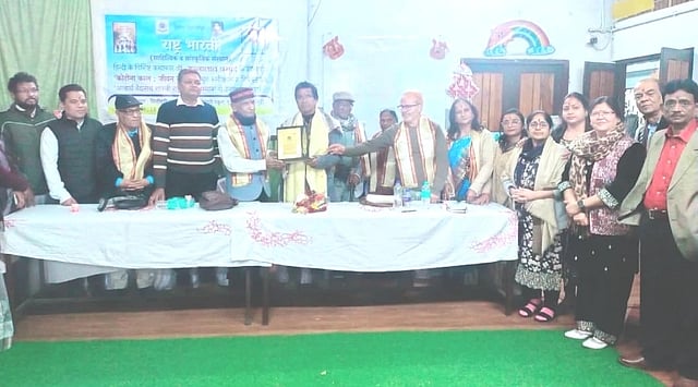 सिलीगुड़ी : शहर के विशिष्ट कथाकार डॉ. मुन्ना लाल प्रसाद को आचार्य वैद्यनाथ शास्त्री राष्ट्र भारती सम्मान से सम्मानित किया गया है। साहित्यिक व सांस्कृतिक संस्थान 'राष्ट्र भारती' की ओर से उन्हें यह सम्मान दिया गया। रविवार शाम लिट्ल मॉडेलाइट्स स्कूल (गुरुंग बस्ती) में आयोजित एक समारोह के दौरान उन्हें इस सम्मान से सम्मानित किया गया। आयोजक संस्थान के अध्यक्ष वरिष्ठ साहित्यकार देवेन्द्रनाथ शुक्ल ने अन्य अतिथियों की मौजूदगी में उन्हें शॉल ओढ़ा कर, खादा पहना कर, गुलदस्ता एवं प्रशस्ति-पट भेंट कर सम्मानित किया। इसके लिए उन्होंने भी संस्थान 'राष्ट्र भारती', आयोजक व अन्य सभी का आभार जताया।
