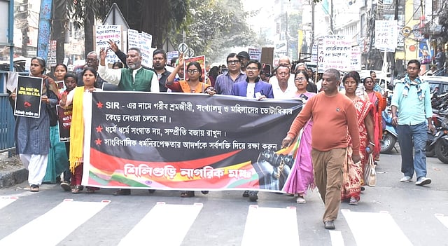 इस अवसर पर सिलीगुड़ी नागरिक मंच के संयोजक पार्थ चौधरी ने कहा कि, एसआईआर के नाम पर मतदाता सूची में त्रुटि सुधार की जगह लोगों को हैरान, परेशान व प्रताड़ित किया जा रहा है। आम गरीब, अल्पसंख्यक व महिला श्रमजीवी लोगों के मताधिकार छीने जा रहे हैं। भारतवर्ष के धर्मनिरपेक्ष चरित्र को बदलने की साजिश की जा रही है। उसके लिए ही विषमता वाले काले कानूनों सीएए, एनआरसी व एनपीआर आदि को लाया जा रहा है। यह सब नहीं होना चाहिए। एसआईआर के नाम पर लोगों की हैरानी, परेशानी बंद की जानी चाहिए। काले कानूनों को रद किया जाना चाहिए। इन मुद्दों को लेकर हम आम नागरिकों का आंदोलन चलता रहेगा। उन्होंने आम लोगों से भी सजग व सचेत रहने की अपील की।