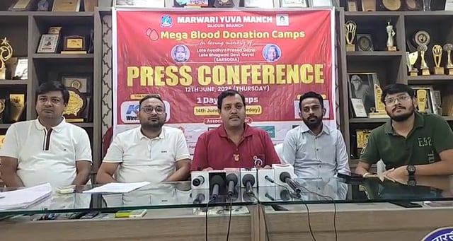 मारवाड़ी युवा मंच की सिलीगुड़ी शाखा के कार्यालय में गुरुवार को संवाददाता सम्मेलन आयोजित कर शाखा अध्यक्ष प्रणय गोयल ने इस बाबत विस्तृत जानकारी दी। उन्होंने बताया कि पिछले वर्ष इस अभियान द्वारा 1530 यूनिट रक्त संग्रहित हुए थे। इस बार अपने ही उस रिकॉर्ड को तोड़ कर नया कीर्तिमान स्थापित करने का लक्ष्य है। इसमें अनेक संगठनों व संस्थाओं एवं लोगों ने सहयोग का हाथ बढ़ाया है। इस बार का यह अभियान स्वर्गीय अयोध्या प्रसाद गोयल एवं स्वर्गीया भगवती देवी गोयल सरसोदिया की स्मृति को समर्पित है। बरसात के मौसम में जलजनित तरह-तरह की बीमारियों के चलते अस्पतालों में रक्त की मांग काफी बढ़ जाती है। उसके फलस्वरूप रक्त संकट की स्थिति उत्पन्न हो जाती है। उसी रक्त संकट दूर करने, रक्त की आपूर्ति को स्थायित्व प्रदान करने, रक्तदान के प्रति लोगों को जागरूक करने के लिए ही यह अभियान है। उन्होंने सभी से इसमें बढ़-चढ़ कर भाग लेने व इसे सफल बनाने की अपील की है।इस दिन संवाददाता सम्मेलन में उक्त अभियान के समन्वयक सीए विशाल जैन, मारवाड़ी युवा मंच की सिलीगुड़ी शाखा के सचिव अक्षय अग्रवाल अन्य कई सम्मिलित रहे।