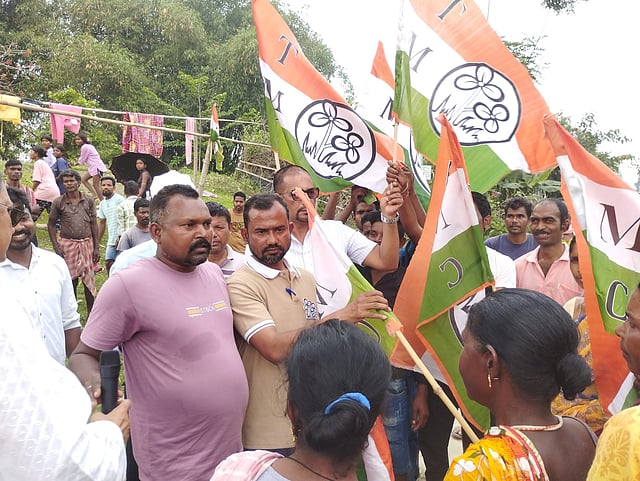 हाथों में तृणमूल का झंडा ले पार्टी शामिल होते समर्थक