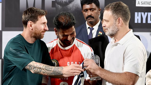 मेस्सी ने राहुल गांधी को अपनी साइन की हुई विशेष अर्जेंटीना कलर की नंबर 10 जर्सी गिफ्ट की, जिसे 'GOATED No. 10' जर्सी कहा गया। बदले में राहुल गांधी ने मेस्सी को एक स्मृति चिन्ह भेंट किया। इस मुलाकात के दौरान तेलंगाना के मुख्यमंत्री रेवंत रेड्डी भी मौजूद थे। यह मुलाकात खेल और राजनीति के अनोखे संगम का प्रतीक बनी, जिसने फैंस में उत्साह बढ़ा दिया।