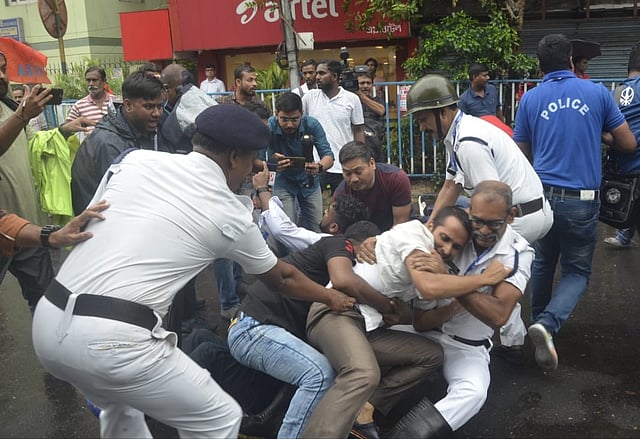 कोलकाता : जादवपुर विश्वविद्यालय कैंपस को रैगिंग मुक्त करने की मांग पर शुक्रवार को बारिश में ही भाजपा युवा मोर्चा व एबीवीपी की ओर से रैली निकाली गयी जिसे लेकर काफी हंगामा हुआ। पहले एबीवीपी की ओर से रैली निकाली गयी थी। हालांकि शुरुआत में ही रैली को पुलिस की बाधा का सामना करना पड़ा। पुलिस का बैरिकेड तोड़ते हुए एबीवीपी समर्थकों ने आगे जाने की कोशिश की जिसके बाद पुलिस के साथ उनकी धक्का-मुक्की हो गयी। रैली जब जेयू के गेट के सामने से गुजर रही थी तो उस समय जेयू के गेट के सामने जूते दिखाये गये और बोतलें फेंकी गयी। आरोप है कि भाजपा की महिला प्रदर्शनकारियों को खींचकर हटाया जा रहा था जबकि कोई पुरुष पुलिस कर्मी मौजूद नहीं था। घटना को केंद्र कर काफी हंगामा हो गया। इसके बाद ही युवा मोर्चा की रैली चालू हुई जो गोलपार्क से जादवपुर के 8बी बस स्टैंड तक निकाली गयी थी। बैरिकेड तोड़ने की कोशिश करने पर ही पुलिस ने रोकने की कोशिश की। कई एबीवीपी समर्थकों को पुलिस प्रिजन वैन में हिरासत में लेकर चली गयी। रैली में विपक्ष के नेता शुभेंदु अधिकारी, विधायक अग्निमित्रा पॉल, डॉ. इंद्रनील खां व तरुण ज्योति तिवारी समेत अन्य भाजपा नेता व कार्यकर्ता मौजूद थे। जेयू का 4 नंबर गेट बंद कर दिया गया था। वहीं शिक्षक संगठनों ने इस दौरान मानव बंधन बनाया था। भाजपा की दो रैलियाें के कारण लोगों को ट्रैफिक जाम का सामना करना पड़ा।