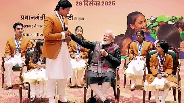 नई दिल्लीः राष्ट्रपति द्रौपदी मुर्मू ने अपनी आक्रामक बल्लेबाजी से क्रिकेट जगत में धूम मचाने वाले 14 वर्षीय प्रतिभाशाली खिलाड़ी वैभव सूर्यवंशी और सात वर्षीय शतरंज खिलाड़ी वका लक्ष्मी प्रग्निका सहित कई बच्चों को शुक्रवार को यहां प्रतिष्ठित प्रधानमंत्री राष्ट्रीय बाल पुरस्कार से सम्मानित किया।
