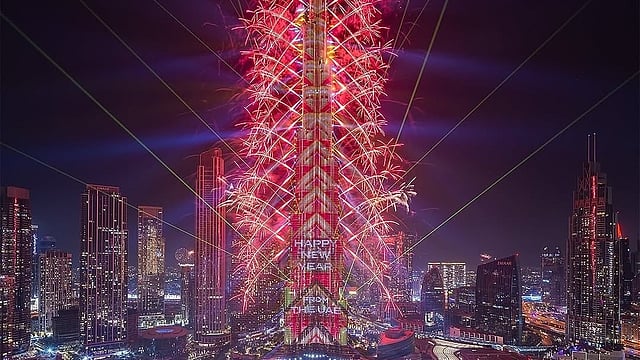दुबई के बुर्ज खलीफा पर 2026 के स्वागत में अभूतपूर्व लाइट, लेजर और आतिशबाजी शो देखने को मिला। आधी रात के बाद आसमान में ‘फीनिक्स' आकृति उभरी, जिसने दर्शकों को मंत्रमुग्ध कर दिया। डाउनटाउन दुबई में लेजर तकनीक और सिंक्रोनाइज्ड फायरवर्क्स का अनूठा संगम भी दिखा। आधी रात के बाद दुबई का आसमान रंग-बिरंगी रोशनी और नवीन फायरवर्क्स से एक विशाल ओपन-एयर मंच में तब्दील हो गया, जिसने पूरी दुनिया का ध्यान खींचा। इस ऐतिहासिक पल को देखने और कैमरों में कैद करने के लिए बड़ी संख्या में अमीराती नागरिकों, प्रवासियों और पर्यटकों की मौजूदगी रही। काफी संख्या में भारतीय भी यहां पहुंचे थे।
