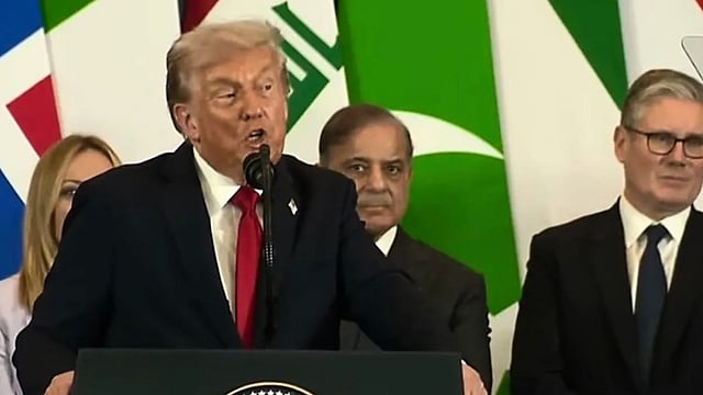 बता दें कि इससे पहले शहबाज शरीफ और पाकिस्तान के सेना प्रमुख जनरल आसिम मुनीर की प्रशंसा करते हुए डोनाल्ड ट्रंप ने पाकिस्तान के प्रधानमंत्री को सभा को संबोधित करने के लिए आमंत्रित किया। इसके बाद शहबाज शरीफ ने कहा कि राष्ट्रपति ट्रंप के अथक प्रयासों के बाद पश्चिम एशिया में शांति स्थापित हुई है।