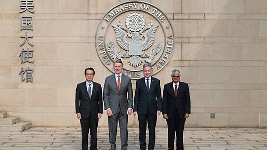 बीजिंगः चतुष्पक्षीय सुरक्षा संवाद (क्वाड) के सदस्य देशों अमेरिका, भारत, ऑस्ट्रेलिया और जापान के राजदूतों ने बीजिंग में सार्वजनिक रूप से प्रचारित दुर्लभ बैठक की। अमेरिकी राजदूत डेविड परड्यू ने सोशल मीडिया मंच ‘एक्स’ पर एक तस्वीर साझा की और बताया यह बैठक बीजिंग स्थित अमेरिकी दूतावास में मंगलवार को हुई।