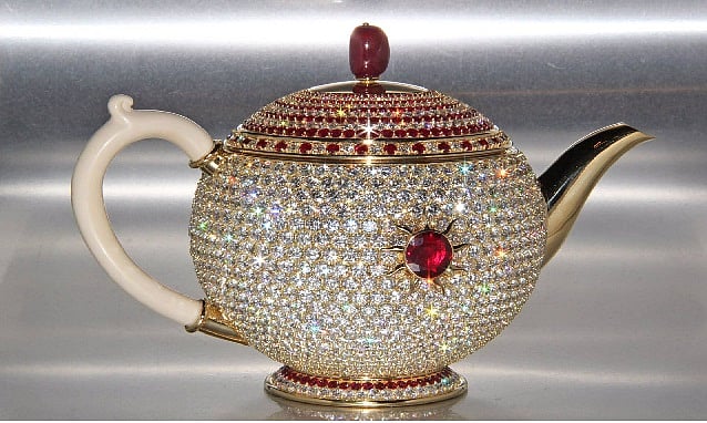 केतली को बनाने में कई महंगे और शानदार रत्नों का इस्तेमाल हुआ है। करीब हर कोने में हीरे जड़े हुए हैं। जो इसकी सुंदरता को और बढ़ाता है। मोल्डेड मैमथ आइवरी से इसका हैंडल तैयार किया गया है। जानकार बताते हैं कि इसका हैंडल हाथी के दांत से बना है। सोने की परत से बने केतली के बेस में 18 कैरेट सोना लगाया गया है। इटैलियन जौहरी फुल्वियो स्केविया ने केतली का बेस तैयार किया है। बॉडी में 1658 हीरे, 386 प्रामाणिक थाई और बर्मी माणिकों से जड़ी है जो बाहरी हिस्से में लाल रंग की छाप जोड़ती है। वहीं, सेंटर में शोस्टॉपर 6.67 कैरेट का थाई रूबी है।