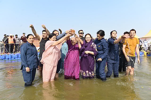 प्रयागराज - तीर्थराज प्रयागराज में रविवार को उत्तर प्रदेश की राज्यपाल आनंदीबेन पटेल ने भी अपनी उपस्थिति दर्ज कराई। रविवार को उन्होंने त्रिवेणी संगम में डुबकी लगाई और महाकुम्भ में सम्मिलित होने के अवसर को उन्होंने विशिष्ट बताया। त्रिवेणी संगम में स्नान के साथ ही उन्होंने बड़े हनुमान मंदिर, अक्षयवट और सरस्वती कूप में विधिवत दर्शन-पूजन व अर्चन किया।