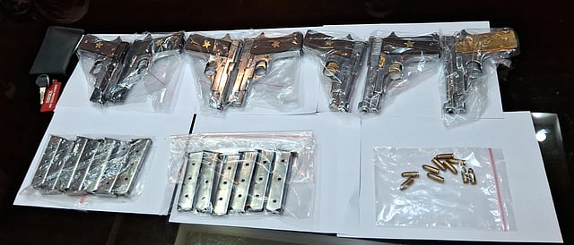 पुलिस के अनुसार, मंगलवार को थौबल जिले के येरुम चिंग क्षेत्र की तलहटी से सुरक्षाबलों ने आठ आग्नेयास्त्रों के साथ गोला-बारूद और विस्फोटक बरामद किए। बरामद हथियारों में तीन सिंगल-बोल्ट एक्शन राइफल, मैगजीन सहित पांच नौ मिमी पिस्तौल, एक हथगोला, तीन आईएनएसएएस मैगजीन, विभिन्न कैलिबर के 40 कारतूस और चार डेटोनेटर शामिल हैं।
