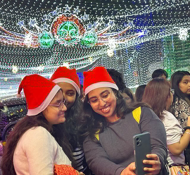 कोलकाता : इन दिनों पार्क स्ट्रीट क्रिसमस कार्निवल के रंग में पूरी तरह से डूबा हुआ है। क्रिसमस आने में मात्र गिनती के दिन बाकी है। ऐसे में क्रिसमस से पहले आखिरी विकेंड यानी रविवार को पार्क स्ट्रीट में घूमने वालों की काफी भीड़ देखने को मिली। पार्क स्ट्रीट की सबसे बड़ी खासियत है, इसकी क्रिसमस सजावट, जिसे देखने के लिए दूर-दूर से लोग यहां आते हैं। ऊंचे-ऊंचे पेड़ों पर टंगी रंग-बिरंगी लाइटें, सितारे, घंटियां और सांता क्लॉज की आकृतियाें से पूरे इलाके को सजाया गया है। चारों ओर उत्सव का माहौल छाया हुआ है। लोग अपने परिवार और दोस्तों के साथ यहां घूमने आने लगे है और क्रिसमस वाइब्स फील कर रहे हैं। जैसे-जैसे क्रिसमस नजदीक आ रहा है, वैसे-वैसे यहां घूमने वालों की भीड़ भी बढ़ती जा रही है। कुल मिलाकर, पार्क स्ट्रीट इन दिनों सिर्फ एक सड़क नहीं, बल्कि खुशियों, रोशनी और उत्साह का केंद्र बना हुआ है।